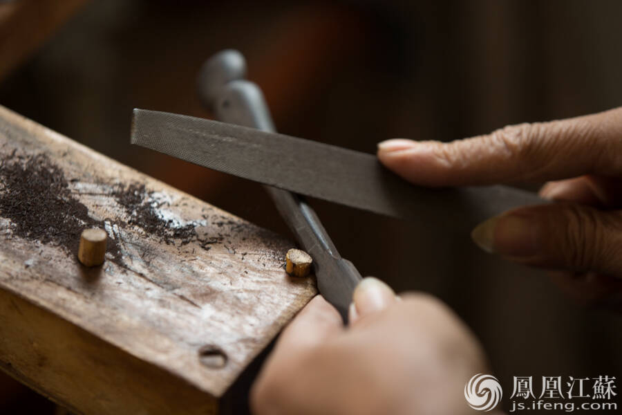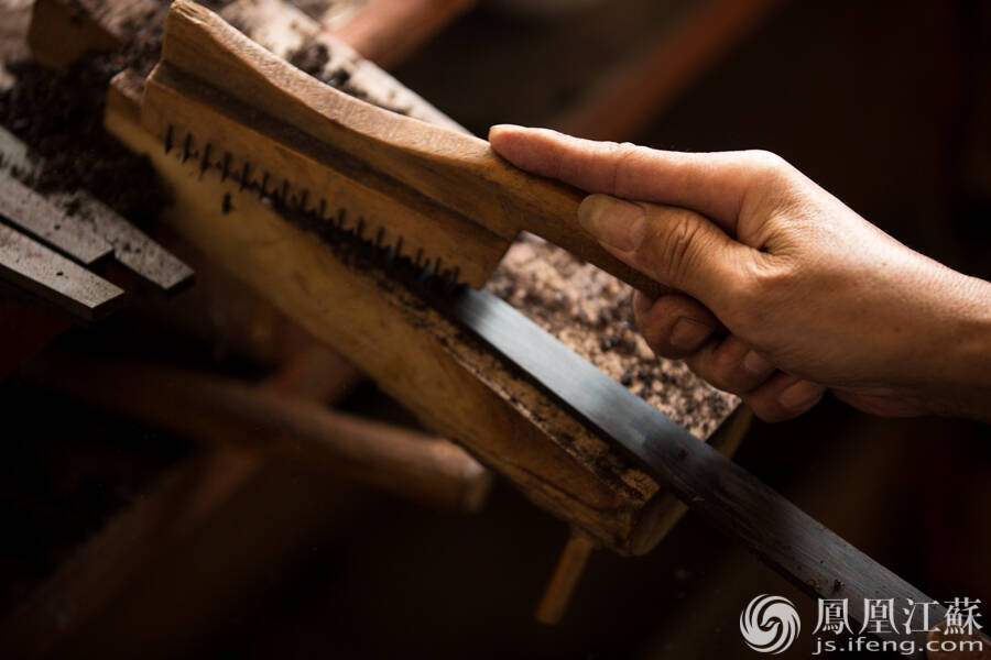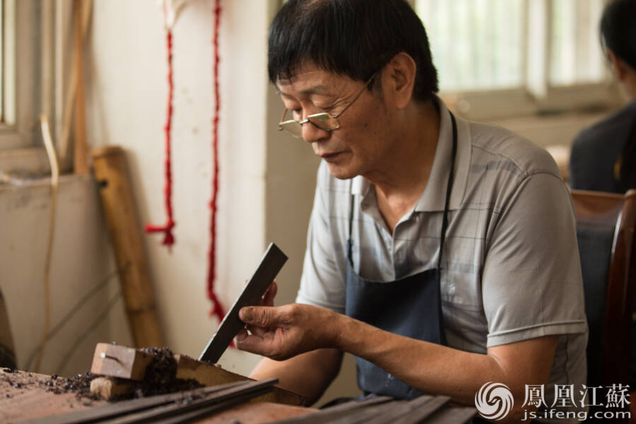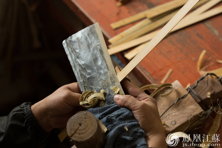 造形。也叫“道边”,用刀和锉刀一点一点削磨出扇边的形状。(文/叶祥兵 摄/郑欢)