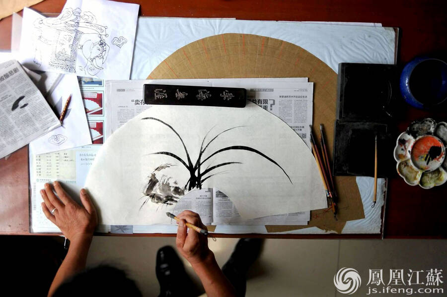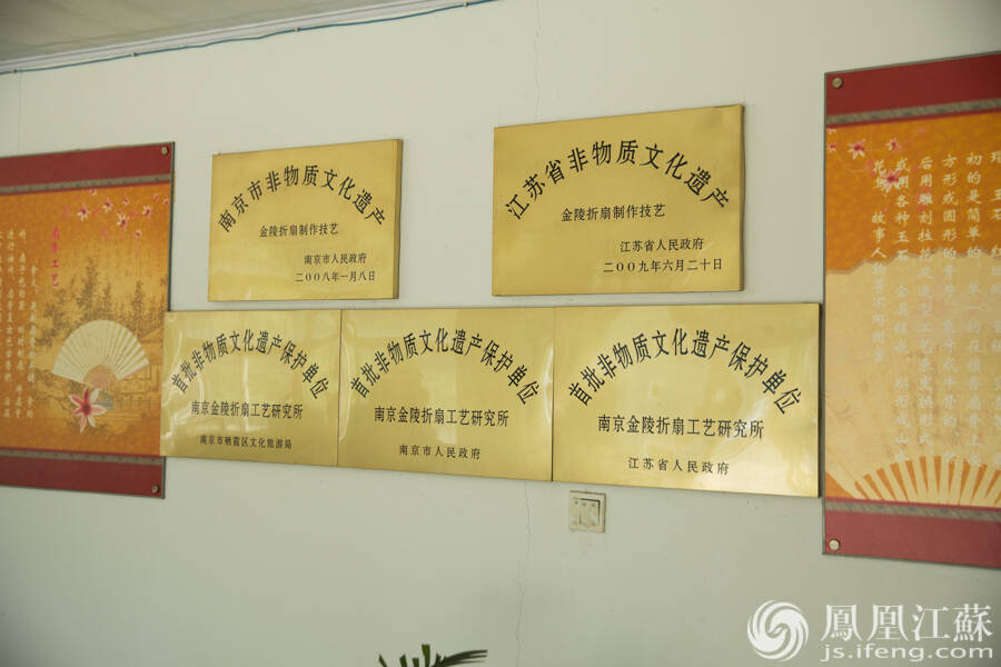 2008年1月金陵折扇成功申报为南京市非物质文化遗产,2009年9月晋升为江苏省非物质 文化遗产。如今,南京金陵折扇工艺研究所是江苏省对“金陵折扇”这一非物质文化遗产进行保护的唯一研究、生产、传承机构。(文/叶祥兵 摄/郑欢)