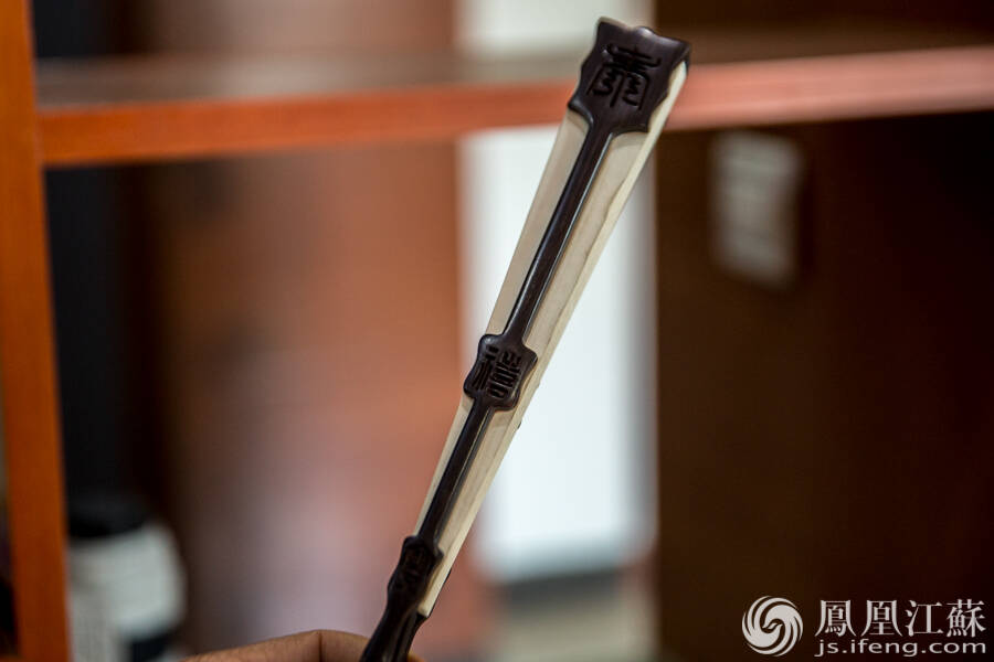 金陵折扇也与南京其他非遗项目开展合作,努力发掘传统技艺的现代价值。图为带有金陵竹刻的折扇。(文/叶祥兵 摄/郑欢)