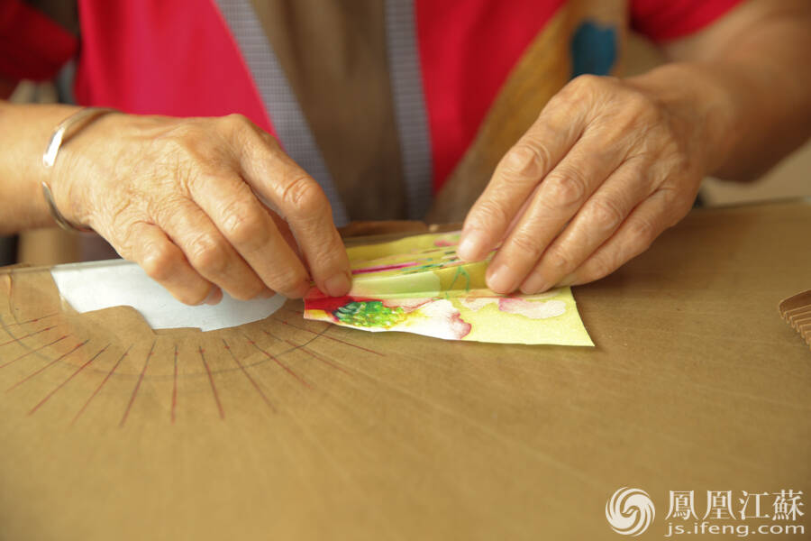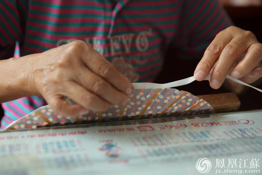 沿边。扇边条用的是真丝,将丝绢粘上去。(文/叶祥兵 摄/郑欢)