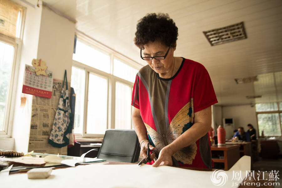 制扇面。制扇面的第一步是剪面,根据样板纸剪出需要的扇面。(文/叶祥兵 摄/郑欢)