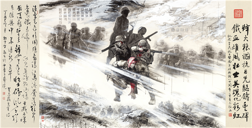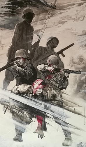 回忆往事,满头银发、精神硕奕的丁志凡感慨万千。近期,老人家多次出席电视网络现场直播、新闻媒体采访活动不觉劳累,今天看完电视直播后仍话语万千。此刻,她手持画家黄志毅的国画作品图片《铁血英魂壮士雄风》,指向画面中央飘扬的“陆军87师261旅”军旗,激动地对记者说:“这就是陈颐鼎当年带领的部队,南京保卫战光华门不知牺牲了多少人啊!”