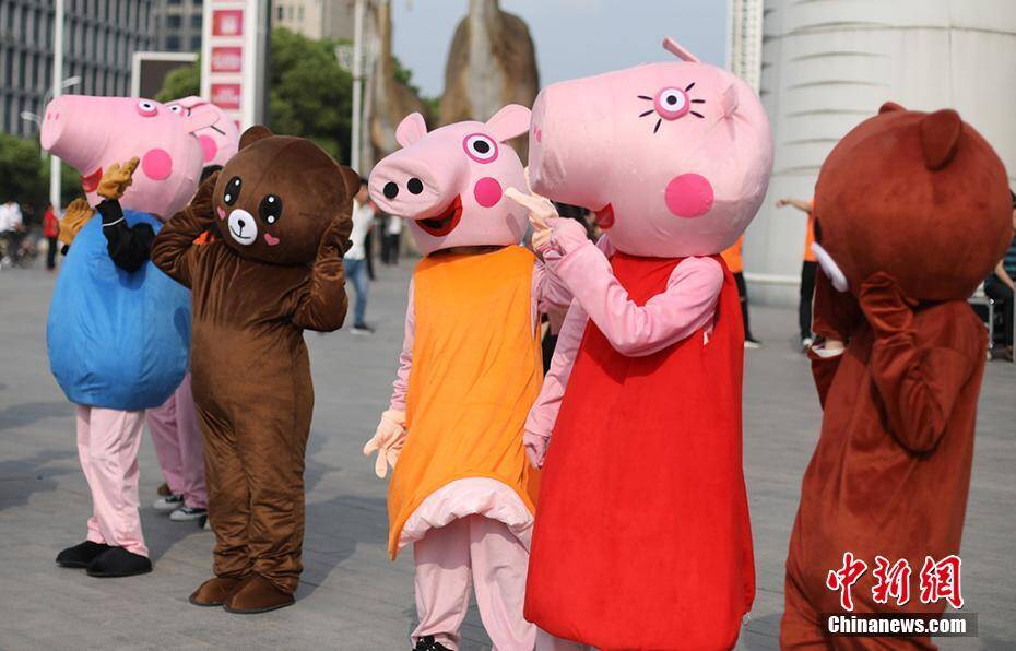 “小猪佩奇”等玩偶也来玩快闪。
