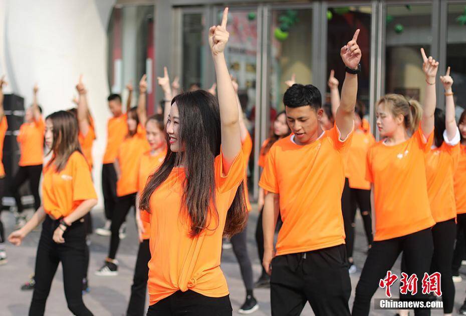 年轻人快闪跳集体舞。