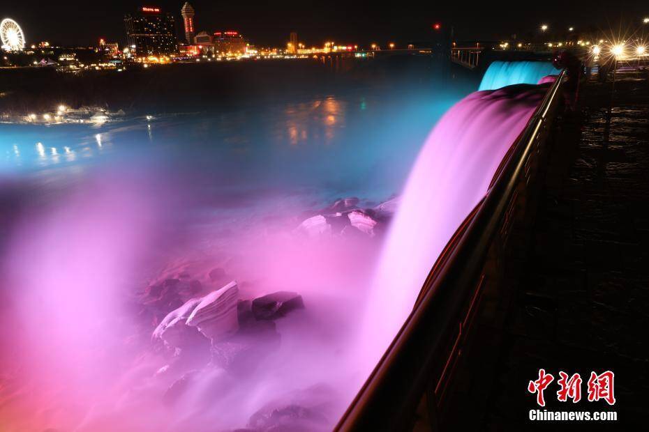 当地时间4月29日,美国纽约州与加拿大安大略省交界处的尼亚加拉瀑布气温回升、水量逐渐丰沛,美国一侧在该瀑布开行的雾中少女号游船随之复航,游客得以与大瀑布亲密接触。夜晚,瀑布在灯光照射下流光溢彩,吸引游客驻足。