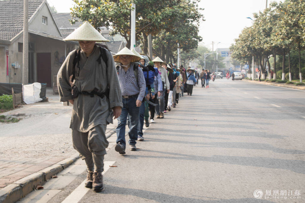江苏南京——山西五台山,相距一千多公里,在交通发达的今天,乘飞机和大巴四个小时就能到达。然而,有一群人,要用一个多月的时间,栉风沐雨,餐风露宿,通过步行的方式走到目的地。4月28日,三位法师、十八位居士,从南京六合长芦禅寺出发,向千里之外的佛教圣地山西五台山进发。(文/林景怡 摄/胡潇)